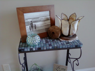 How cute is that? I love the pop of color. As an added bonus, it turns out that Hubs does too! The much-hated shelf is no longer hated. We put it in our entry above my Fish Tank Stand table. They fit together nicely and I have a place to make sure I’ve combed my hair I look presentable before answering the door. Hey, when you work at home, hair combing is optional.
