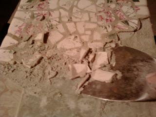 I found some pretty cabbage rose plates that had one pink rose on the side. There were only five plates and we have six people in the family, so even though they were pretty, there was no way I was going to keep those plates and hear the fights over who got to use the flower plates. Even though I have mostly boys who don’t much care for flowers, trust me, there is no limit to the things kids can find to fight over. My daughter and husband were crushed that I could bring myself to break up such pretty plates. I happily took a hammer to those plates and smashed out all future arguments.