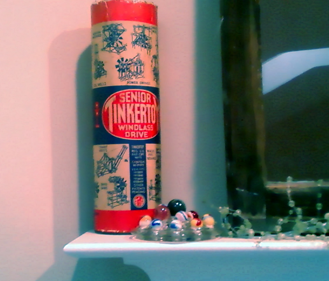 The glass frog Marble Display is already in use. Here it is on my mantle next to my Tinker Toy Box (that helped me make these).