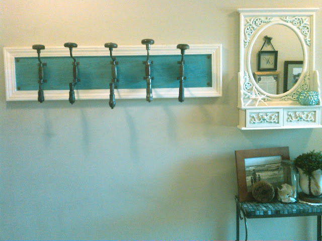 I was instantly in lOvE!Sue and Ki had a project in one of these books that I need to rip-off replicate. A few years back, Hubs made this nice coat rack for me. We had one in our Troy, Ohio house (but left if for the new owners) and he made a new one for Idaho house, that we also used in Utah. However, real estate on the moving van back to Ohio was at a premium, and the coat rack was forgotten left in Utah for some other tenants to enjoy.