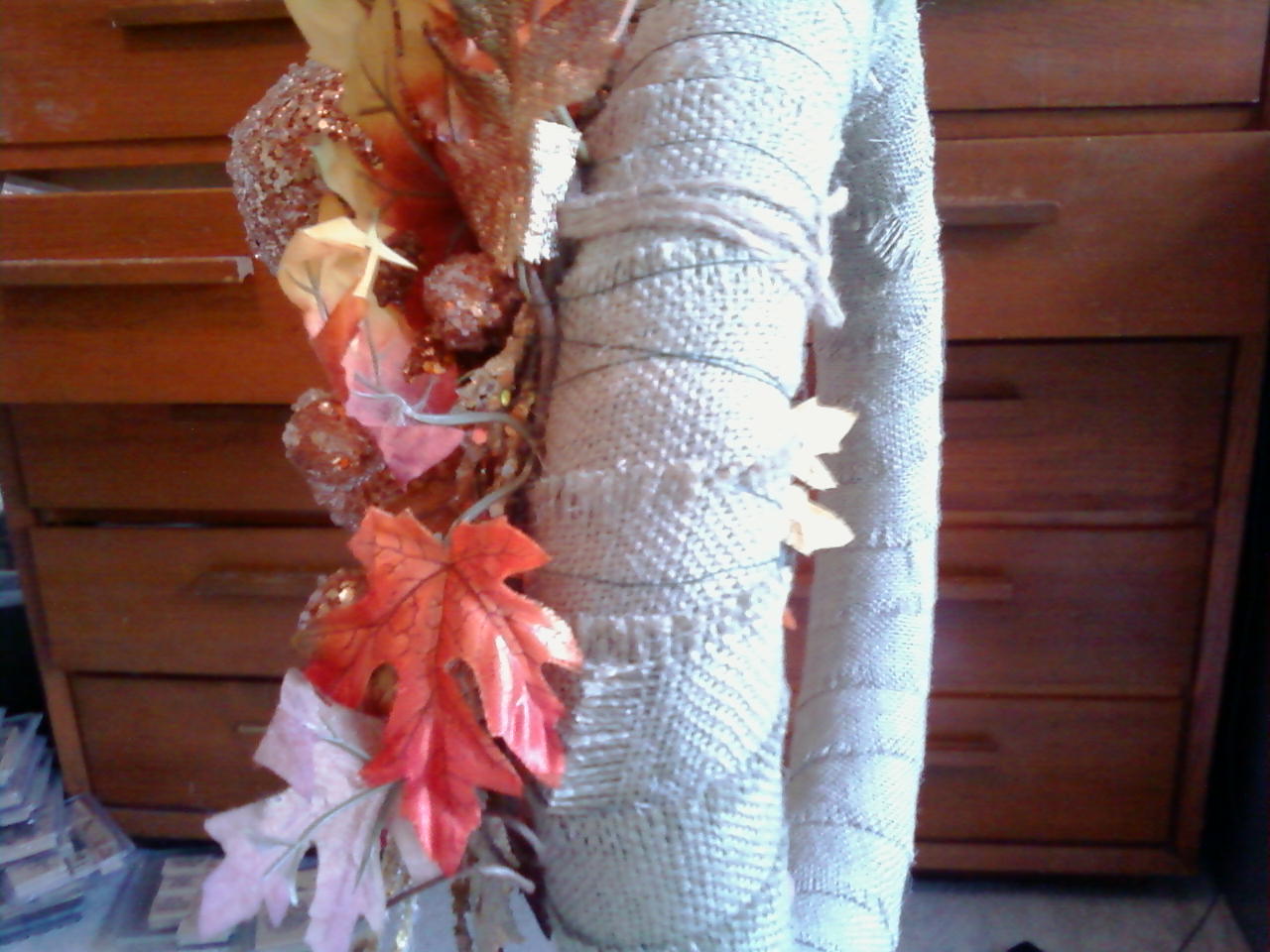 I have some burlap left over from the curtains I mentioned a few posts back. I will get a picture of those one of these days, but the extra burlap sure has come in handy.