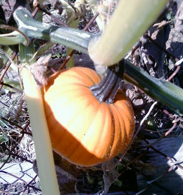 I did it. Just like that, as bold as a brass lamp from the Goodwill, I marched right up to my fence and liberated that poor, homeless pumpkin.