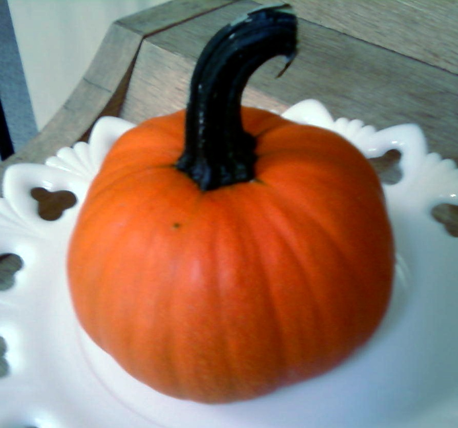 If you read my Pumpkins Gone Wild post, you will recall that I had issues about whether I could claim the pumpkin as my own, as it was from my neighbor’s yard, but growing on my side of the fence. Obviously, I built a bridge and got over it because here she now sits in my home, awaiting her transformation.