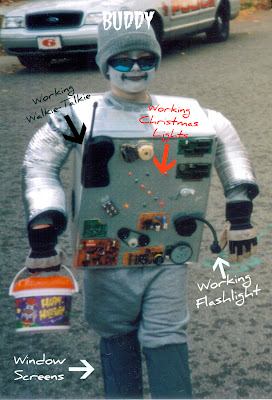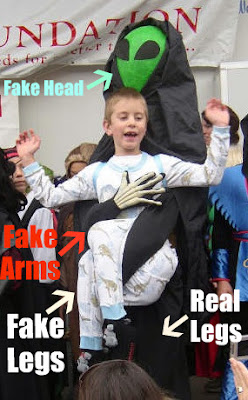 The next year, I totally made it up to Kiddo with this costume. I made him the Alien Encounter Costume from the Family Fun Magazine.