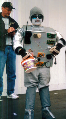 Buddy took first place in his division that year. However, Kiddo was forced to be a clown. Check out the worlds saddest clown. He later told me how jealous he was that Buddy got such a cool costume and he had to be a stupid clown. You can see by his face in the picture on the right just how jealous he was of Buddy! Poor Kiddo.