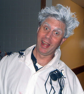 Now it was Buddy’s turn to be jealous. Buddy’s costume that year was reworking a Mad Scientist costume that Hubs wore the previous year. Buddy kicked it up a notch, though.