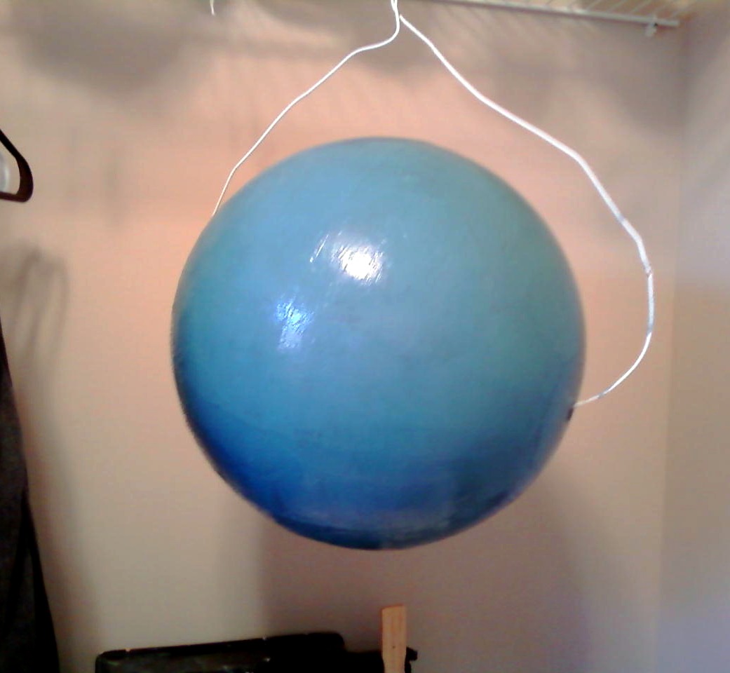 Here’s the globe drying. I painted it on with a brush, and then rolled over it with a foam roller.