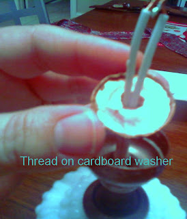 I decided I wanted candle lightbulbs in this lamp, so I bought a little socket converter do-dad. It looks like this: