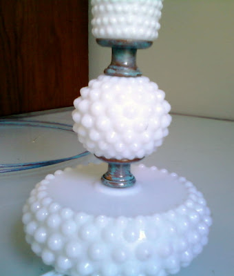 I started by taking the lamp apart. Just unscrew the nut at the bottom of the lamp and all the pieces will slide off the hollow metal rod that runs through the lamp.