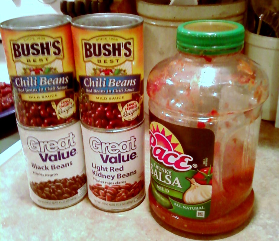 I just made my own from Bouillon today because it’s what I had. You use a teaspoon of bouillon for every cup of water. Pour it in the crock pot with the salsa and beans. If you want to save yourself 4 seconds, you could buy the box of broth, too.