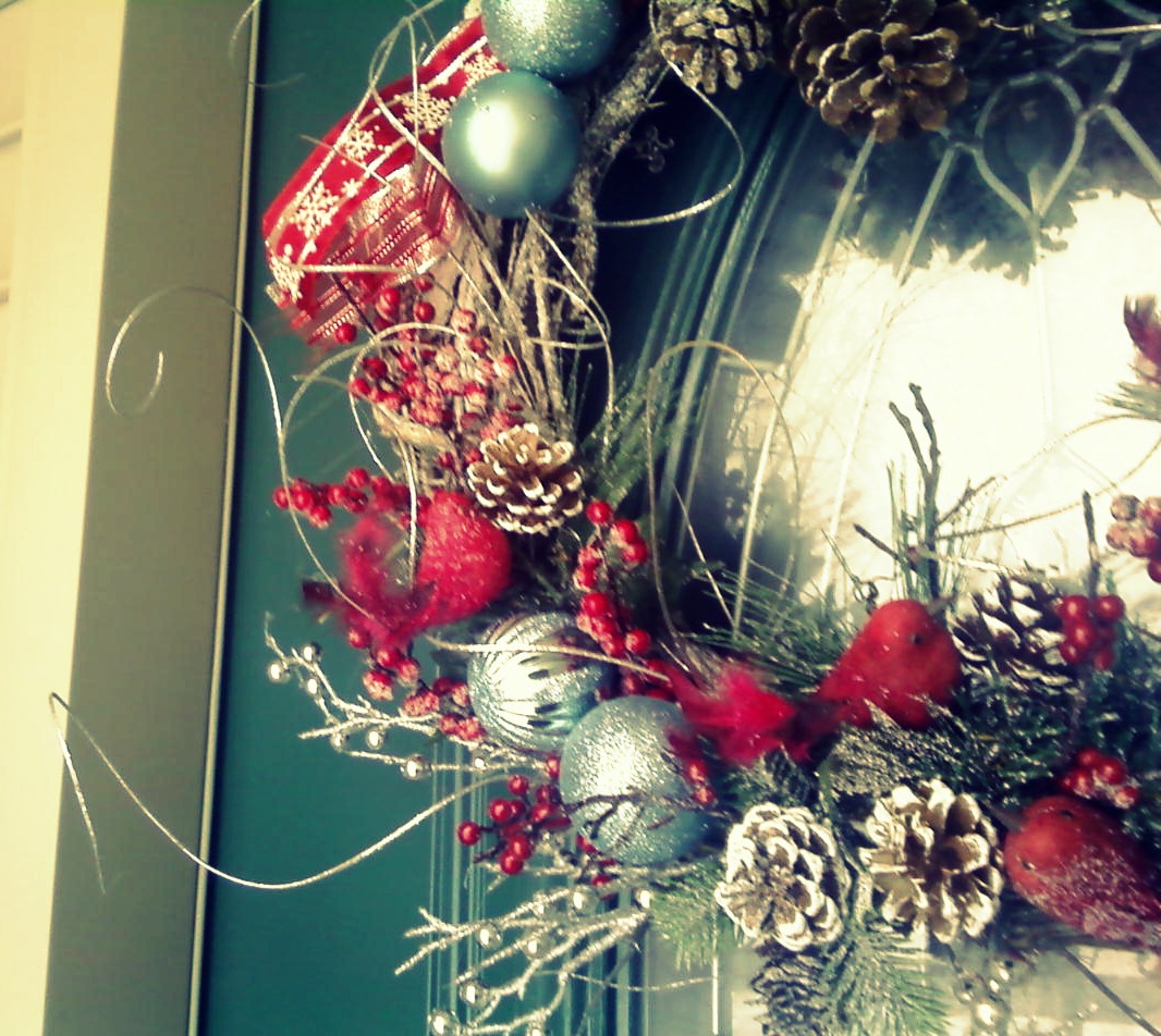 Sigh…I’m a happy girl. Pretty colors, nature meets glam wreath.