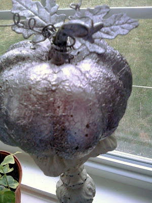 I gave this one away and I’m certain I’ll make another one next year. I love the industrial look to it. This is another pumpkin that will last the season. Denise at Junk Dog Design, who won the pumpkin, told me it has a permanent spot in her home. She’s not limiting this guy to the fall.