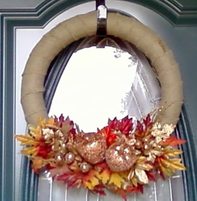 I’ve never been much of a wreath person, but all the beautiful wreaths in Blogland had me itching to try my hand at one. Since I have to world’s drabbest front porch, the wreath adds a little magic there.
