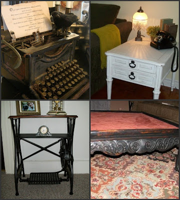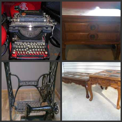 From top left: Antique Remington typewriter for $60; Night Stand $15;