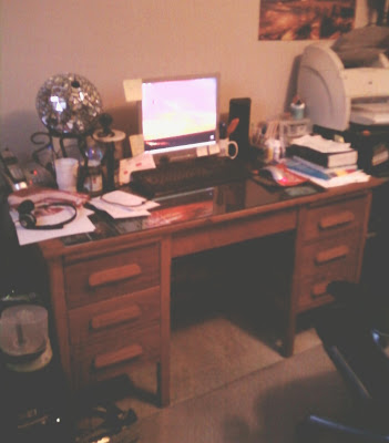 This desk was our inheritance from Hub’s grandfather. The desk is really too tall for me, but since it’s the only desk we own, I make do.