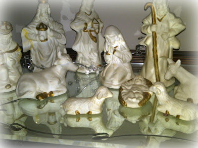 Many years ago, my Mom made a beautiful ceramic nativity scene. Each piece was lovingly painted, glazed and then fired. It took her weeks to make and when she was done, we had this truly special Nativity. Over the years, we were rough and, sadly, it did not survive seven children, but I have wanted a similar Nativity. I’ve yet to find one as beautiful as she made, but I eventually found one I liked at a Dollar Store about 15 years ago.